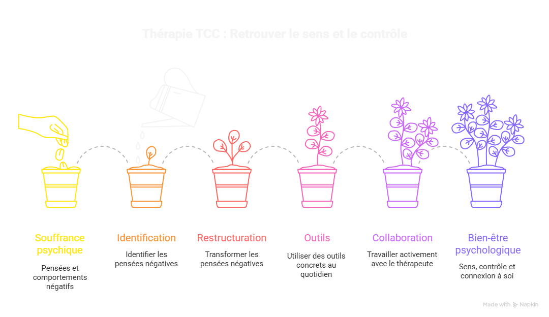 La thérapie est un levier puissant pour retrouver du sens, alléger la souffrance psychique et se reconnecter à soi-même. Les thérapies cognitives et comportementales (TCC), en particulier, sont reconnues pour leur efficacité et leur approche structurée, orientée vers des objectifs concrets.